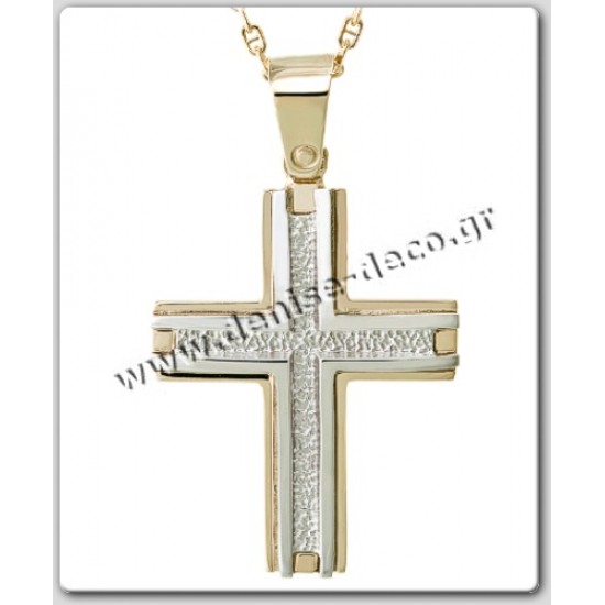 ΦΥΛΟ:Ανδρικό . ΜΕΤΑΛΛΟ:Χρυσό 14Κ. . ΕΙΔΟΣ:Σταυρός . ΧΡΩΜΑ:Δίχρωμο . ΔΙΑΣΤΑΣΕΙΣ:Αλυσίδα: 50cm Σταυρός: 3.5cm x 2cm . ΒΑΡΟΣ:Σταυρός: 3.90gr Αλυσίδα: 3.30gr . ΕΓΓΥΗΣΗ :Επίσημης αντιπροσωπείας.