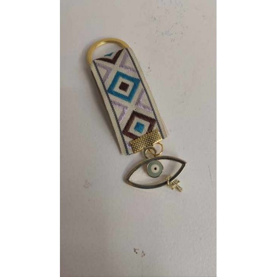 χειροποιητο μπρελοκ μεταλλικο ματακι με σταυρουδακι