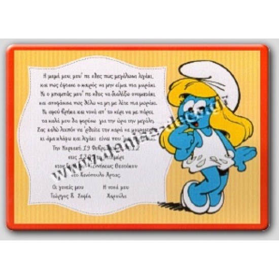| << Προσκλητήριο στρουμφακια στο χωριο | Προϊόν: 130 Από: 208 |
