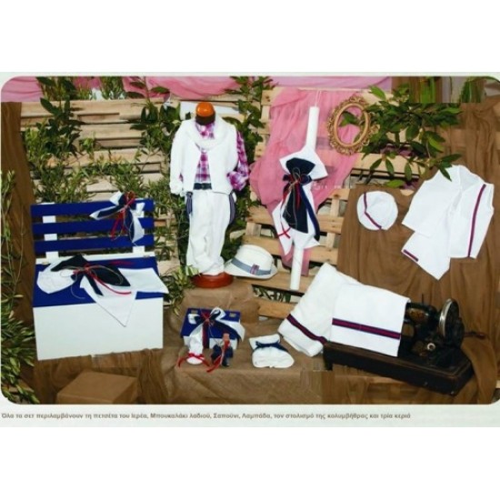 Πακέτο Βάπτισης αποχρωσεις μπλε κοκκινο, που περιλαμβανει παγκακι βαπτιστικο κουτι,σετ λαδιου,κερια κολυμπηθρας,λαδοπανα,ρουχο,λαμπαδα,στολισμο κολυμπηθρας,πετσετα ιερεα,50 μαρτυρικα. Ολα πληρως διακοσμημενα με τα αντιστοιχα χρωματα της φωτογραφιας.