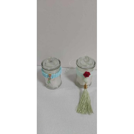 Μπομπονιερα σε γυαλινο βαζακι με διακοσμηση μικρου πριγκιπα περιλαμβανουν δεσιμο και κουφετα