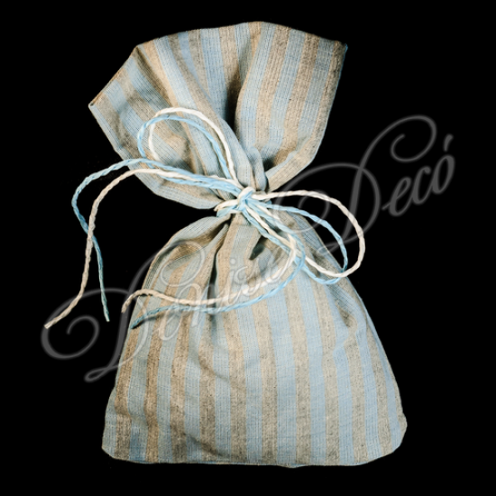 Πουγκι γκρι-σιελ αποχρωση, με δεσιμο απο διχρωμα ψαθινα κορδονακια. Περιλαμβανει εσωτερικο τουλι οργαντζας με κουφετα επιλογης σας. Σε περιπτωση που επιθυμειτε καποια αλλαγη επικοινωνηστε μαζι μας