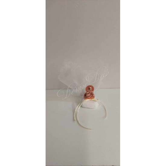 Μπομπονιερα σε βοτσαλο παναγιτσα σε τρεις χρωματικες επιλογες,που περιλαμβανουν δεσιμο και κουφετα
