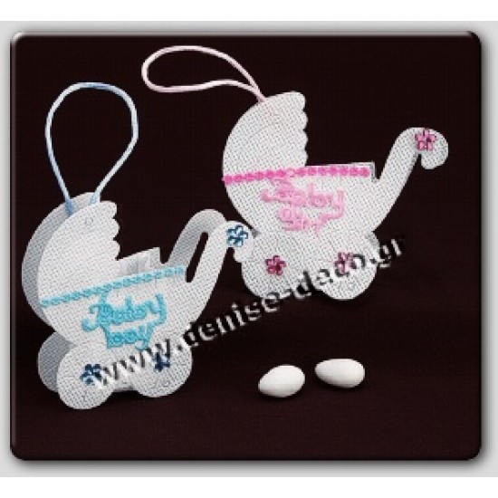 καροτσακι κρεμαστο με στρασσ στις ροδες και χωρο υποδοχης των κουφετων