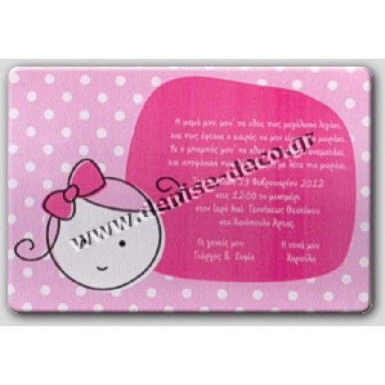 | << Προσκλητήριο κοριτσακι με φιογκακι και πιπιλα | Προϊόν: 57 Από: 208 |