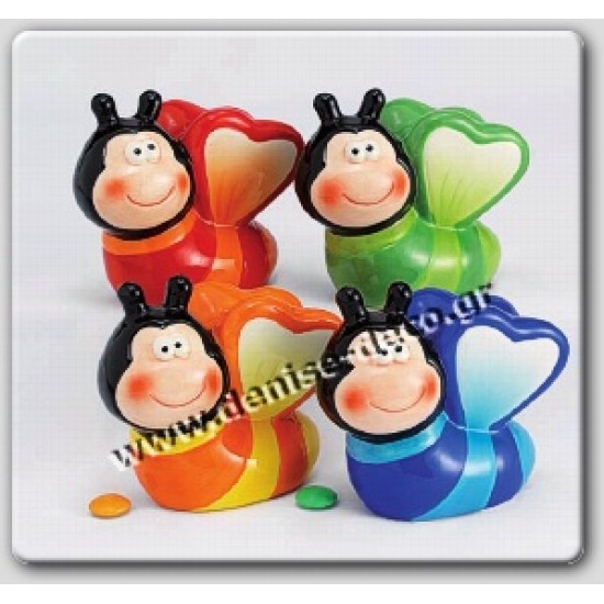 Κεραμικός Κουμπαράς πεταλουδα 8 εκ σε 4 χρωματα σετ 4 τεμαχιων.